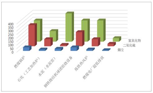 2)非电领域烟气排放标准大大宽松于电力领域。如新建燃煤锅炉颗粒物、二氧化硫、氮氧化物排放标准分别为50、300、300mg/m³,在用燃煤锅炉颗粒物、二氧化硫、氮氧化物排放标准分别为80、400、400mg/m³,石化行业工艺加热炉烟气排放标准是颗粒物、二氧化硫、氮氧化物排放标准分别为20、100、150mg/m³。整体与电力行业超低排放的标准还有较大差距。可以预见非电领域污染排放在雾霾形成中占据非常大的原因,非电领域烟气治理潜力巨大。