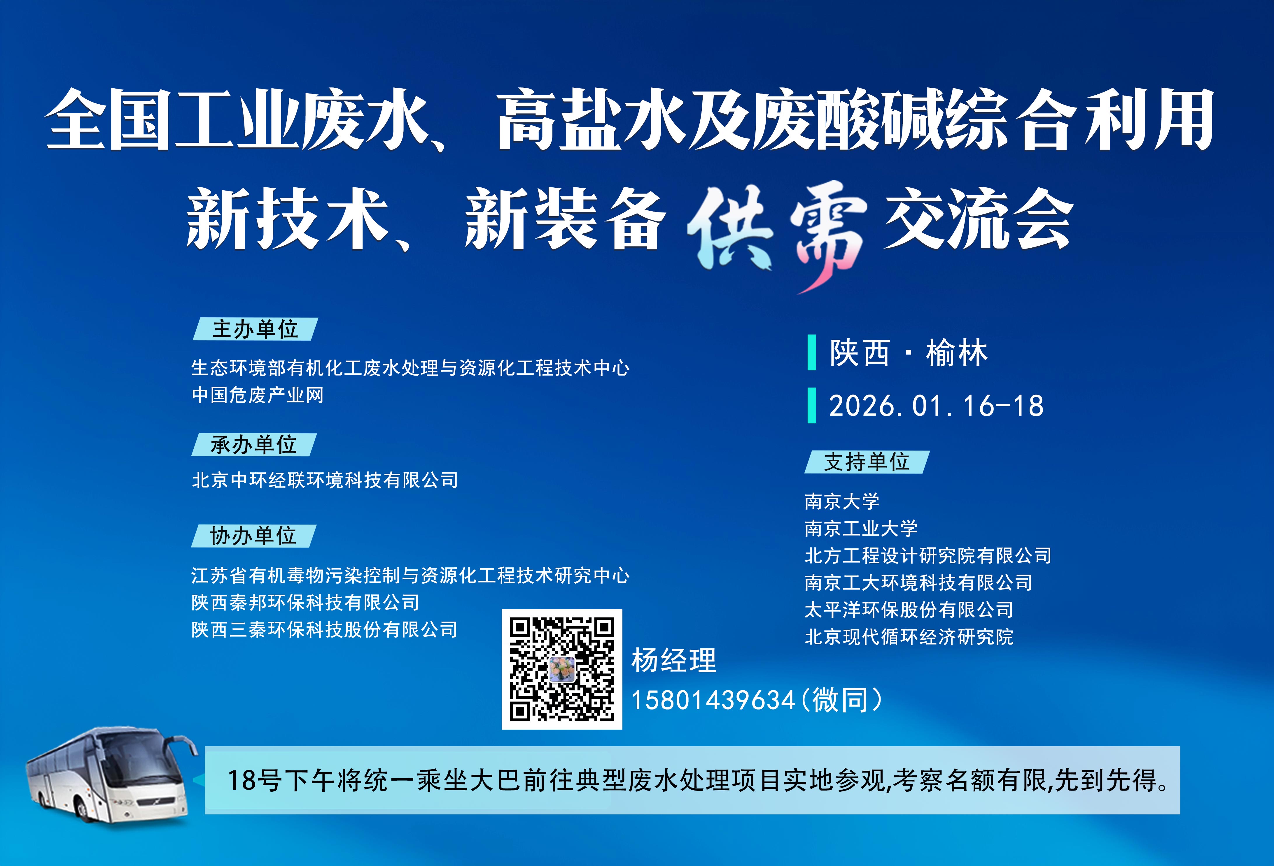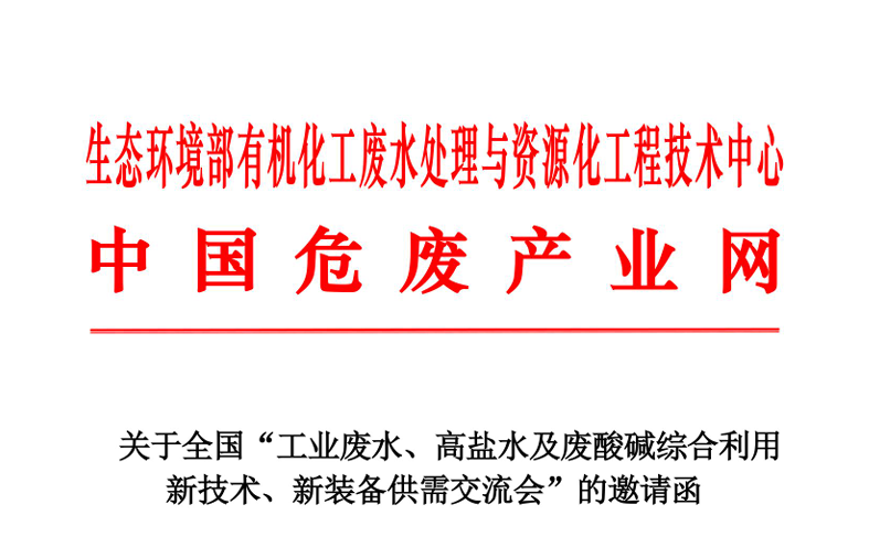 为进一步贯彻落实国家相关环保部门在工业污染防治领域的新思路和新要求,解决工业废水、高盐水及废酸碱利用解决技术的难题,促进新技术的转化,搭建政企产、学、 研、用之间的合作交流,中国危废产业网联合生态环境部有机化工废水处理与资源化工程技术中心及业内权威部门机构将于2026年1月16日- 1月18日在陕西榆林召开全国“工业废水、高盐水及废酸碱综合利用新技术新装备供需交流会”